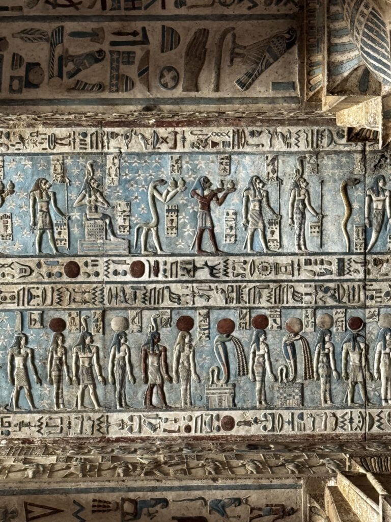 Les zodiaques rectangulaires du pronaos, avec Nout qui porte le ciel, les signes réinterprétés et ce que cette réécriture nous dit de la pensée égyptienne face à l’influence grecque.